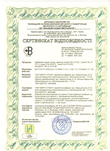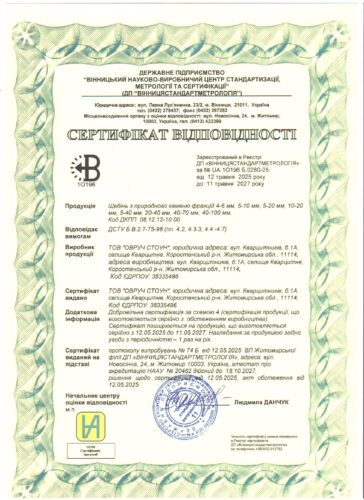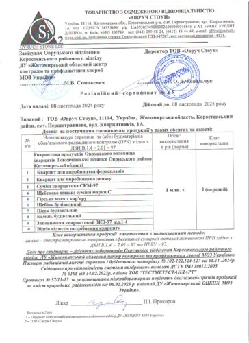 Сертифікати відповідності на продукцію ТОВ “ОВРУЧ-СТОУН” За додатковою інформацією стосовно продукції і її якості Ви завжди можете звернутись до нас